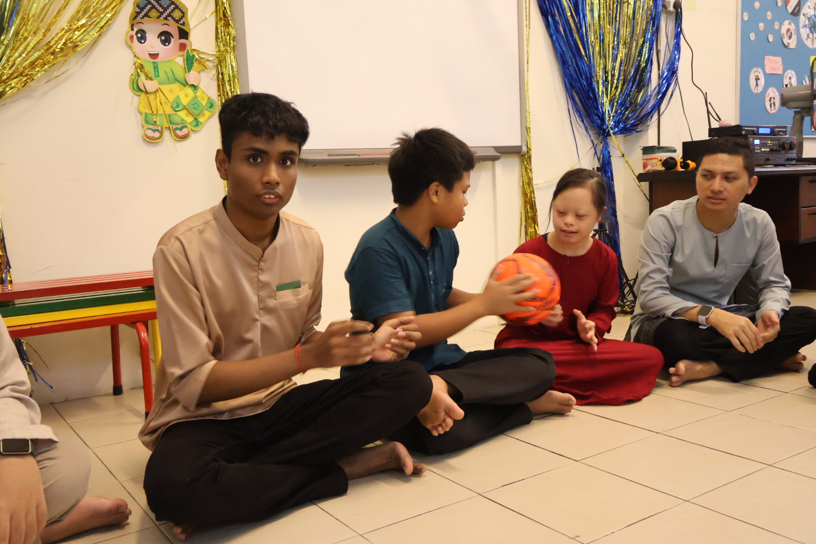 A crowd favourite was the “Passing the Ball” game. When the music stopped, the student holding the ball had to follow teacher’s instructions to find hidden ketupat decorations tucked away in the assembly hall. This game was an excellent exercise in following multi-step directions.