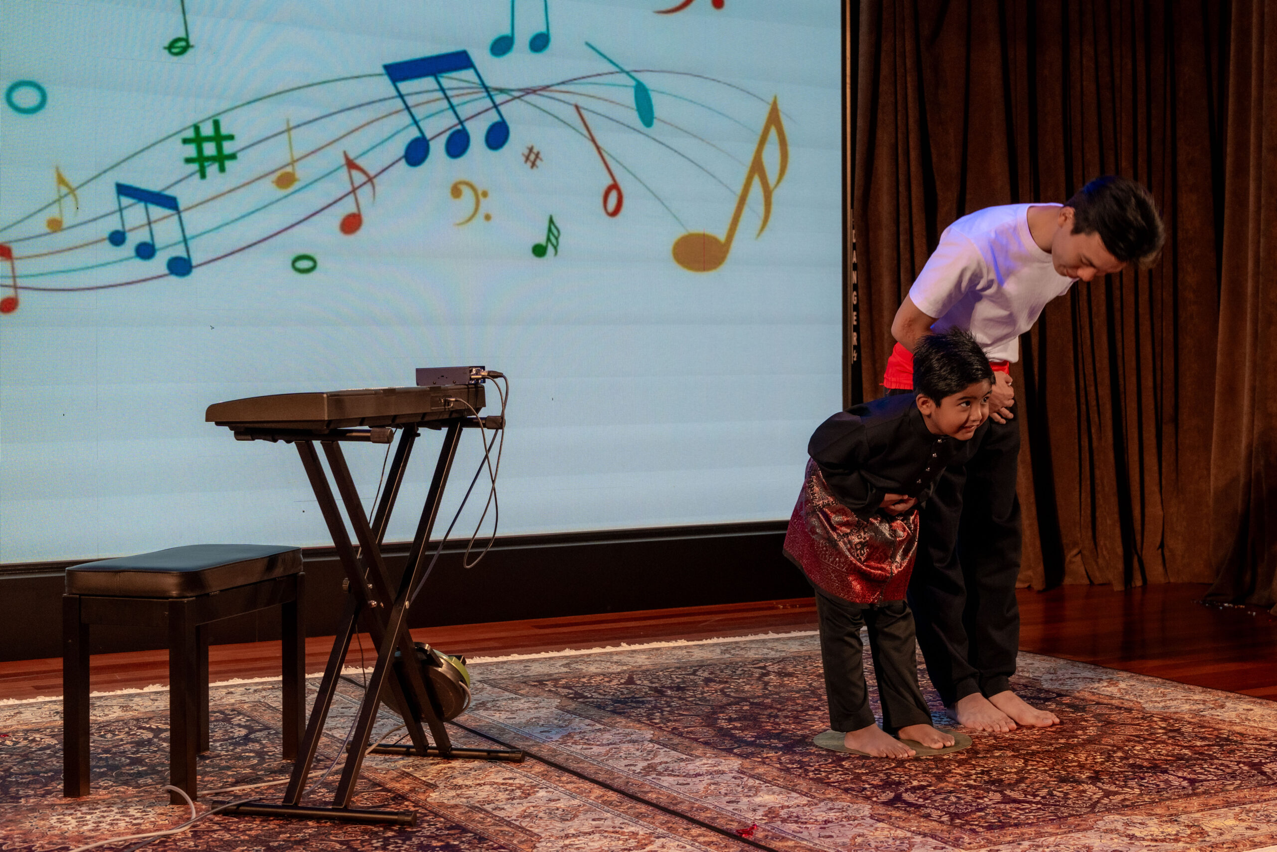 Student Nur Adena Maysara, whose growth at Taarana has been extraordinary, opened the next segment with a solo performance of One Day by Arash, carrying the song with quiet confidence that drew the auditorium toward her. From there, Herveen Muralitharan and Muhammad Syahir Mirza Mahathir Hussain took their places at the keyboard, giving the audience a glimpse of their progress and hard work.